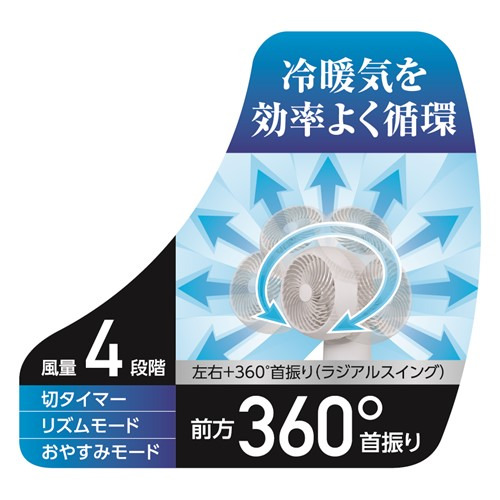 ブリッサ BCAX211WH 360°サーキュレーター【立体首擦り/お手入れ簡単・前ガード・羽根取り出し・水洗い/リモコン付き】 ホワイト