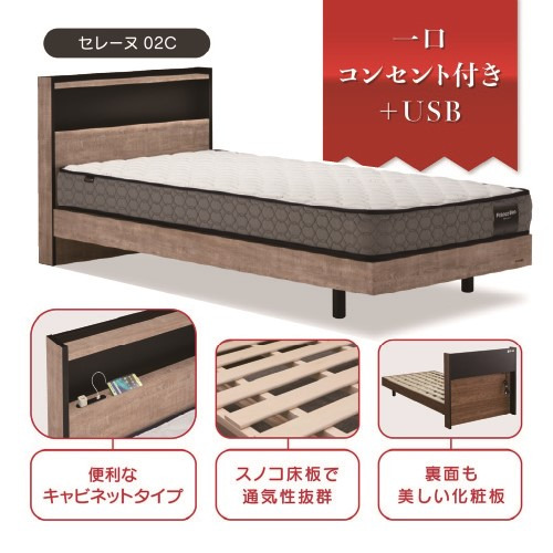 1口コンセント+1口USB付きの便利なキャビネットタイプ。お掃除ロボットが入るレッグタイプ。通気性のよいスノコ床板。