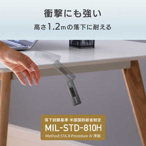 米国国防総省制定「MIL-STD-810H」に準拠した落下試験をクリアする耐衝撃性能を備えています。