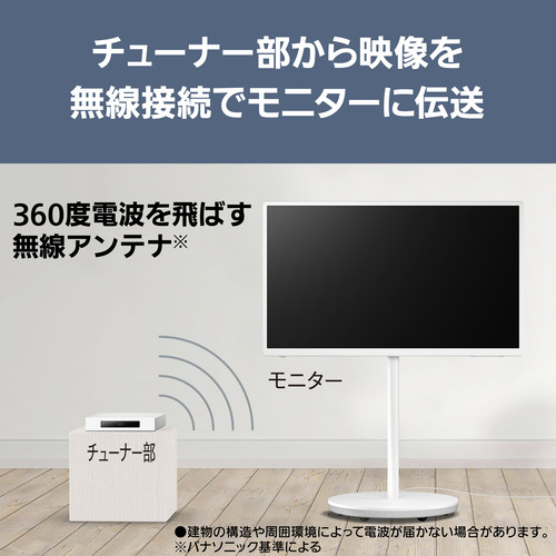チューナー部からモニターに、4K映像をワイヤレスに送信。モニターとチューナー部の無線接続で、配線を気にせず好きな場所で楽しめます。