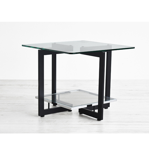 材質:天板:10mm厚クリアガラス/脚:スチール ブラック色