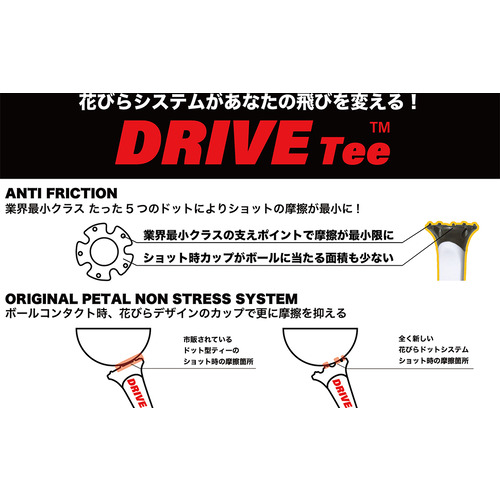 ●いつもより「曲がらない」「飛ぶ」とプロ、アマも絶賛!業界最小レベルの摩擦 花びら型ゴルフティー