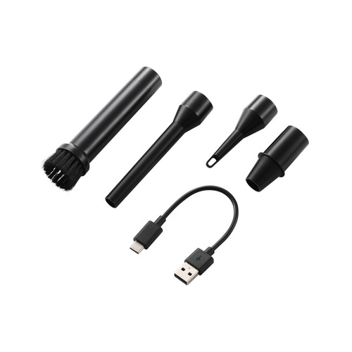 内容物:電動エアダスター本体、噴射ノズル、ブラシ付きノズル、極細エアーノズル、エアーノズル、大口径エアーノズル、USB-A - USB Type-C(TM)ケーブル