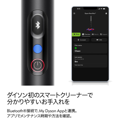 Bluetooth接続で、My Dyson Appと連携。アプリでメンテナンス時期を通知。