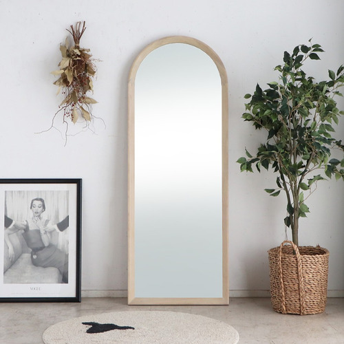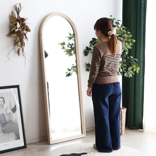 ホワイトカラーのアッシュ材を使用した清潔化のあるスタンドミラー。ホワイトと洗練されたデザインが魅力で、モダンな空間・ナチュラルな空間など様々なインテリアの雰囲気に合うミラーです。壁に立てかけて使用できる利便性のあるタイプでどのような空間にも馴染みます。