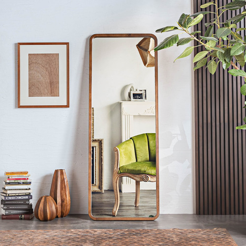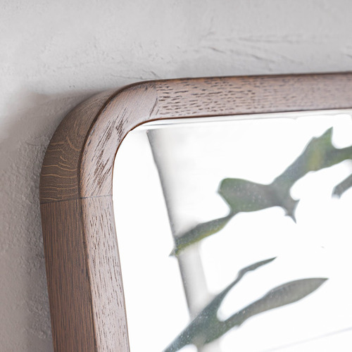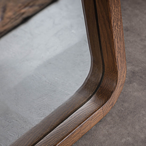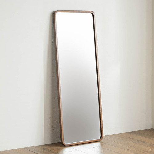 ブラウンカラーのオークと上部の大胆なアールが特徴的なスタイルミラー。洗練されたデザインと上質な風合いが空間に温かみと深みをもたらします。壁に立てかけて使用できる利便性のあるタイプでどのような空間にも馴染みます。