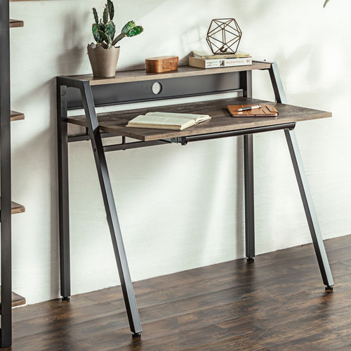 スタイリッシュなデザインと機能性を兼ね備えたワークデスク。コンパクトながらも、作業スペースをしっかり確保できる設計で、狭いスペースにも最適。スチールフレームの頑丈な構造と、温かみのある木目調天板が、モダンで落ち着いた空間を演出します。上棚とスライド式キーボードトレイ付きで、PC作業も快適に。インテリアに馴染む、洗練されたデザインのデスクで、仕事や勉強の効率をアップさせませんか?