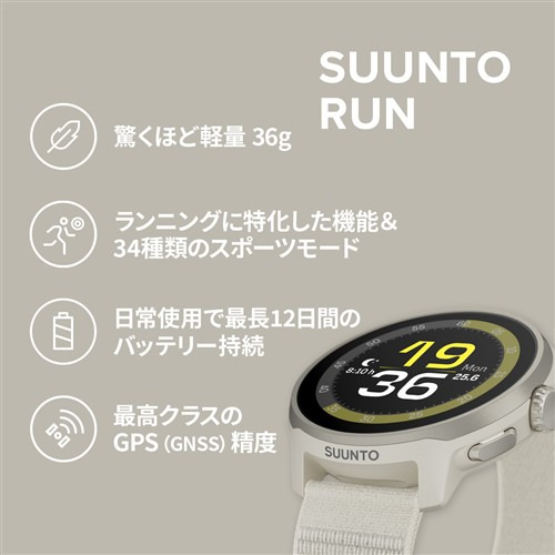 羽のように軽い快適性と正確な心拍数追跡を、ランニングのたびに手首で体感してください。わずか36グラムのSuunto Runは、洗練されたミニマリストのフィット感を追求し、邪魔にならないようぴったりとフィットする布ストラップを備えた、Suunto最軽量のウォッチです。手首を気にせずに歩幅に集中