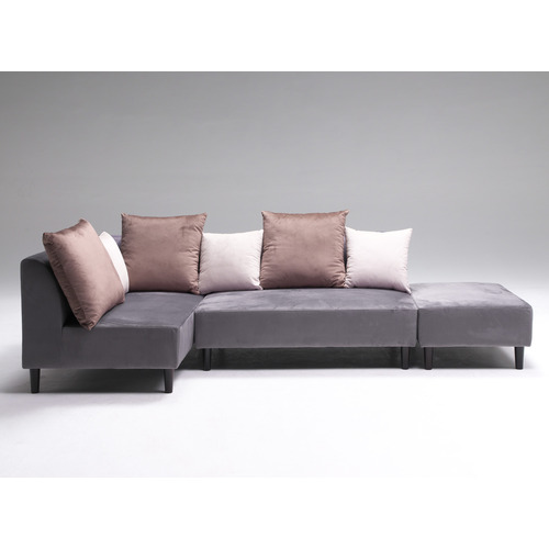 大川家具 カウチソファ 「Nコンパス」 ハイタイプロータイプ選べる スツール付き ファブリック 133×87×76cm(座面高43cm) グレー