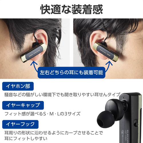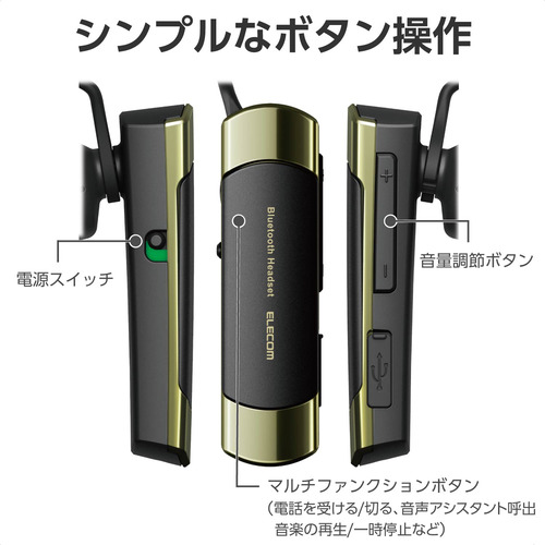 エレコム LBT-HS21MPGD2 Bluetooth 5.2 ヘッドセット 左右両対応 マイク内蔵 ミュート機能 ゴールド