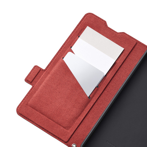 ●不使用時に画面部分をカバーする、横開きタイプのフラップが付いています。