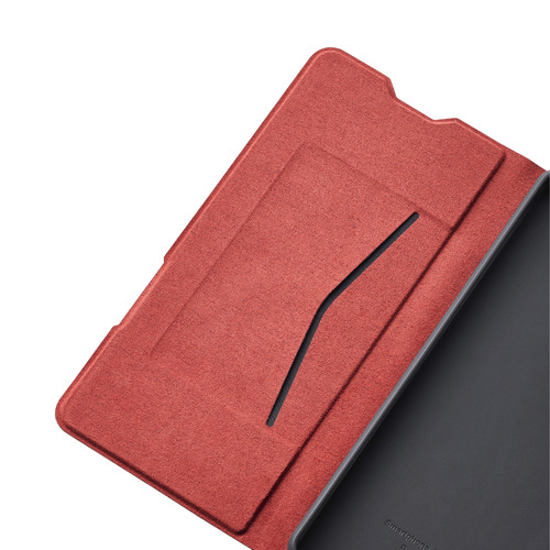 ●不使用時に画面部分をカバーする、横開きタイプのフラップが付いています。