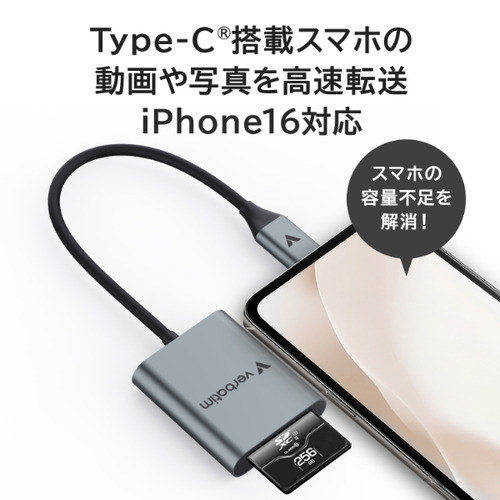 対応機種:USB-C(R)コネクターを搭載したiPhone 15 シリーズ、iPhone 16 シリーズ/iPadおよびiPad Pro等のタブレット/Android スマートフォン、およびPC