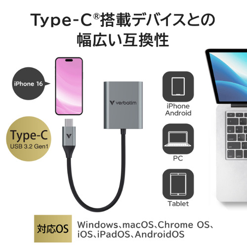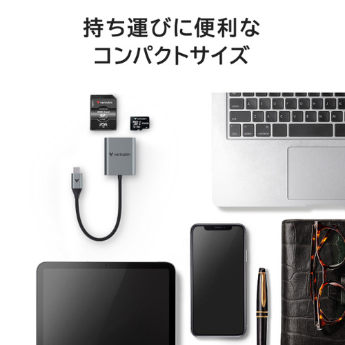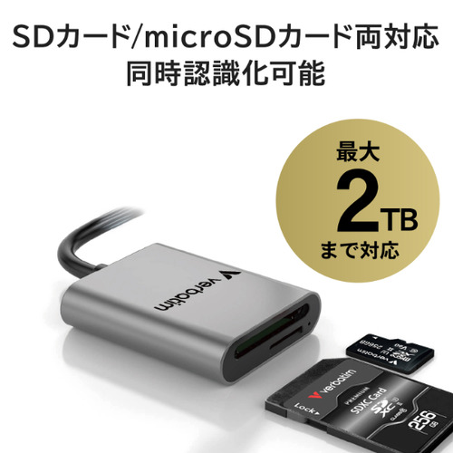 Verbatim SDMSD4CRV1 SD/microSDカードリーダー UHS-II対応 PC スマホ対応 シルバー
