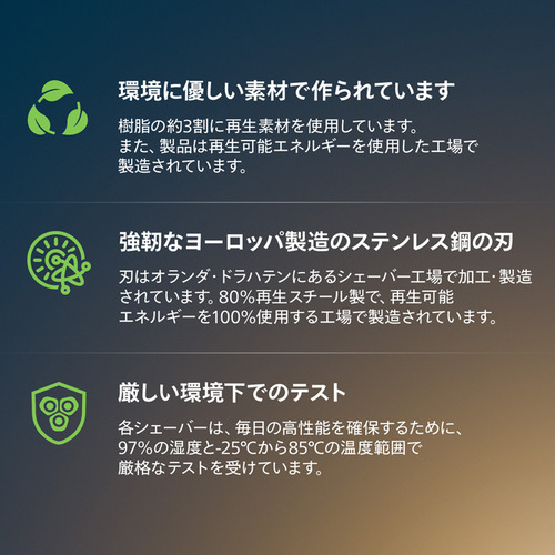 シェーバーに搭載された過圧防止センサーが肌への圧力をリアルタイムで感知し 光のガイドの色を変化させてお知らせ。すぐに最適なシェービングへと調整が可 能です 。 ※イメージ 図 ※イメージ また、シェービング動作検知センサーがシェーバーの動きも感知、スマートフォ ンのアプリと連動し最小限のストローク数で剃れるようにガイドします。
