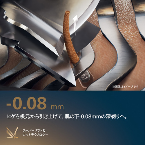 薄くなった外刃*と、スーパーリフト&カットテクノロジーによ り、やさしく、しっかり深剃り。1枚目のリフト刃がヒゲを引き 上げ、2枚目のカット刃が深剃りカット。