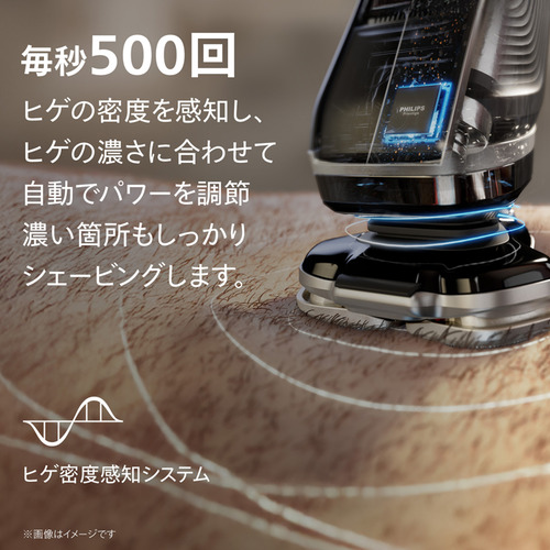 毎秒500回ヒゲの密度を感知し、ヒゲの濃さに合わせて自動でパ ワーを調節。濃い箇所もしっかりシェービングします。