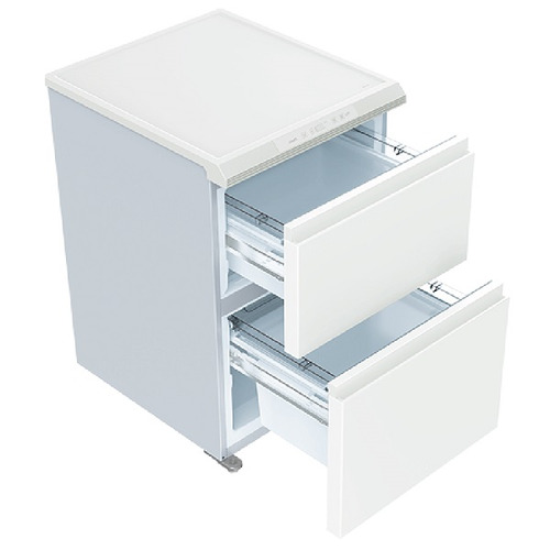 145Lの大型冷凍庫。L上下のそれぞれの引き出しにクリアトレイとボックスを装備。
