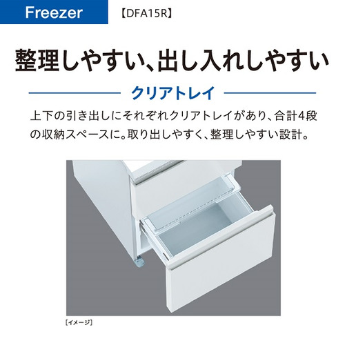 ●クリアトレイ&2段引き出しで145L大容量冷凍庫