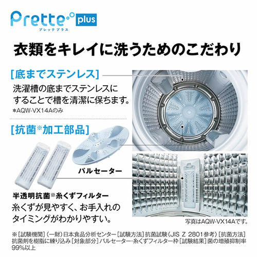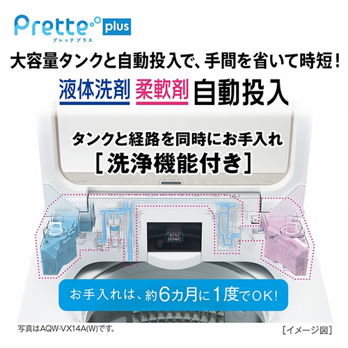 AQUA AQW-VX14A(K) 全自動洗濯機 上開き 洗濯14kg 乾燥3.5kg 簡易乾燥 シルキーブラック