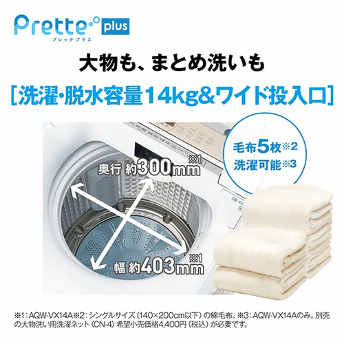 AQUA AQW-VX14A(W) 全自動洗濯機 上開き 洗濯14kg 乾燥3.5kg 簡易乾燥 ホワイト