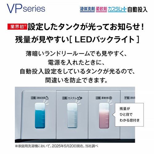 ※:国内家庭用洗濯機において。4つの液剤に対応した自動投入タンクを搭載。2025年5月20日現在。当社調べ。
