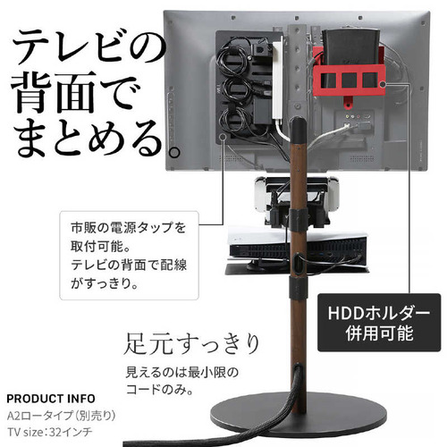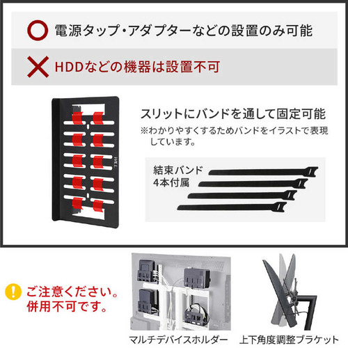 ●WALLテレビスタンドA2シリーズの背面に電源タップやコードを収納するための専用オプションです。●テレビの背面に配線をすっきり収納 WALL A2シリーズの背面に取り付けることでかさばる電源タップやコードをまとめて収納ができます。テレビと周辺機器の電源コードや電源タップはまとめにくくごちゃついた印象になりがちですがテレビの背面を利用してスッキリと収納が可能。スリットのついたプレートに付属の結束バンドを使用して電源タップやコードを固定します。マグネット付きの電源タップはプレートがスチール製なので簡単に固定できます。プレートの取付は背面の左右どちらにも可能。最大左右に2枚取り付けられます。●WALL マグネット付きスマート電源タップとの組み合わせがおすすめ 市販の電源タップの収納にお使い頂けますが、WALLテレビスタンド専用オプションのマグネット付きスマート電源タップと組み合わせての使用がお勧めです。●使用上のご注意 この商品は電源タップやコードを固定するためのプレートです。HDD等の精密機器の収納にはお使いにならないでください。また、この商品はWALL A2、WALL anataIRO専用のオプションです。これ以外のWALLテレビスタンドには取付ができません。