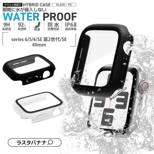 ラスタバナナ Apple Watch Series 6/5/4/SE第2世代/SE 40mm用 ガラス+PC一体型 防水ケース IPX68 ブラック GHB4622AW40