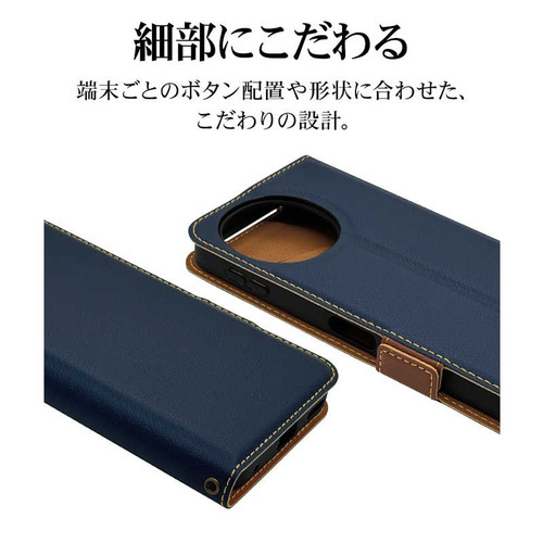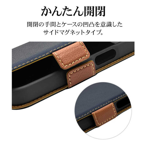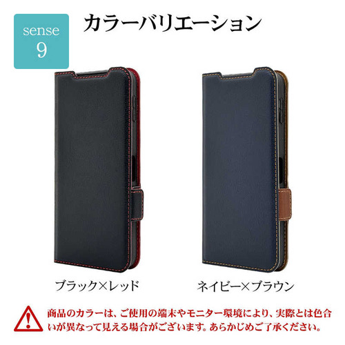 ラスタバナナ AQUOS sense9 薄型手帳サイドマグネットケース 衝撃吸収 ネイビー×ブラウン 8407AS9BSMNVB