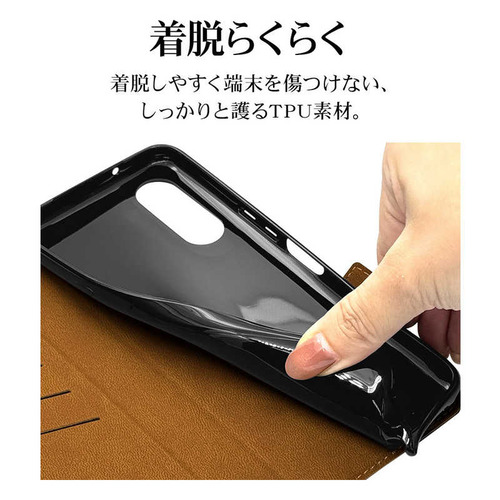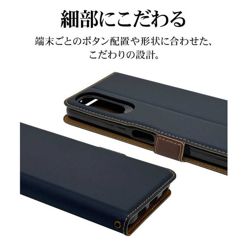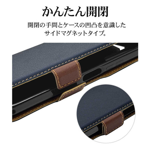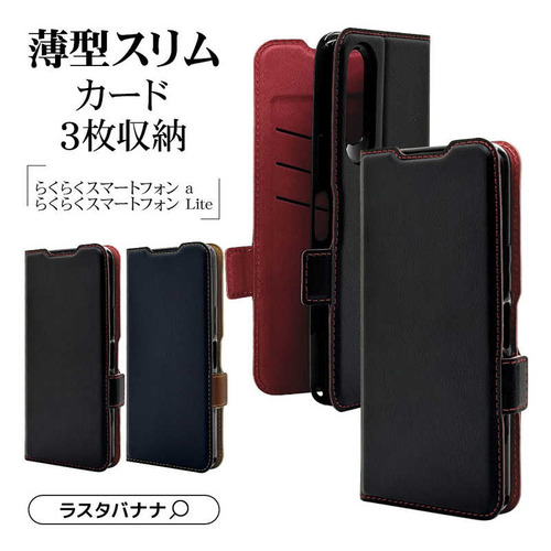 ラスタバナナ らくらくスマートフォンa/らくらくスマートフォンLite 薄型手帳サイドマグネットケース 衝撃吸収 ネイビー×ブラウン 8447RKSMABSMNVB