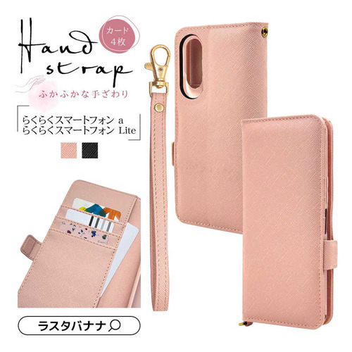 ラスタバナナ らくらくスマートフォンa/らくらくスマートフォンLite ハンドストラップ付き手帳型ケース ブラック 8448RKSMABHSBK