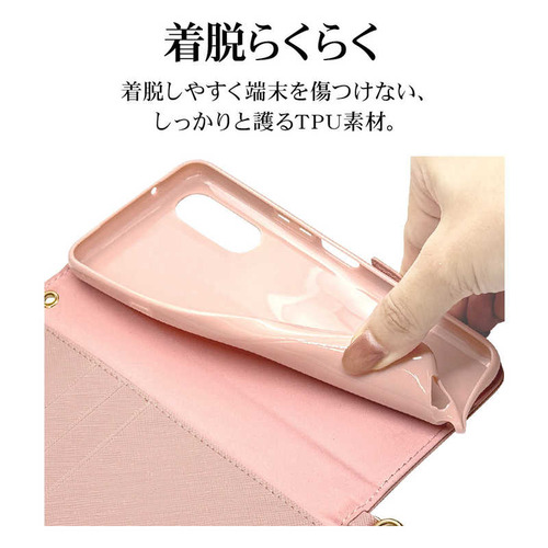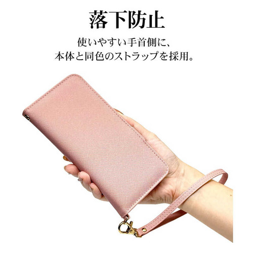 ラスタバナナ らくらくスマートフォンa/らくらくスマートフォンLite ハンドストラップ付き手帳型ケース ライトピンク 8449RKSMABHSLPK