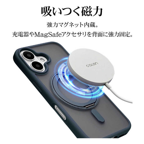 ラスタバナナ iPhone16 ZEROSAFE Circle Magsafe対応 360°回転スタンドケース フロストネイビー 8543IP461ZSFCNV