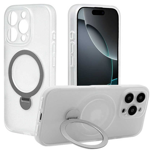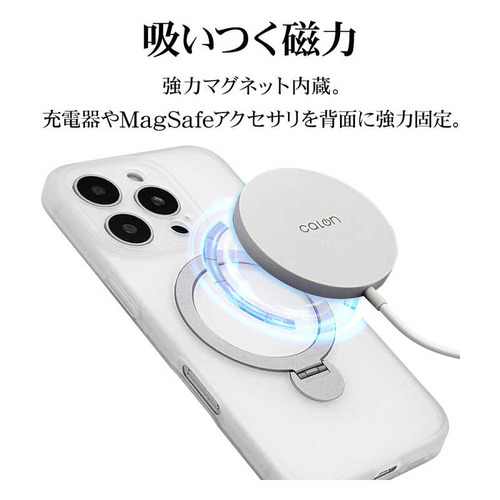 ラスタバナナ iPhone16Pro ZEROSAFE Shaft カメラ周囲保護 Magsafe対応 360°回転スタンドケース フロストホワイト 8547IP463ZSFSWH