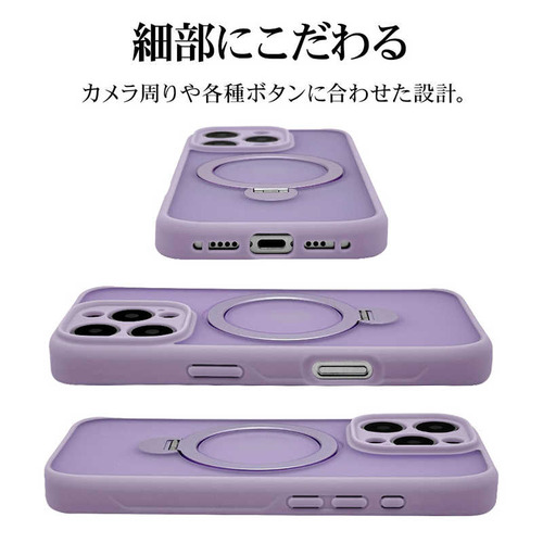 ラスタバナナ iPhone16Pro ZEROSAFE Shaft カメラ周囲保護 Magsafe対応 360°回転スタンドケース フロストパープル 8550IP463ZSFSPU