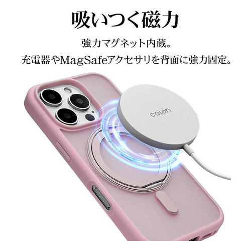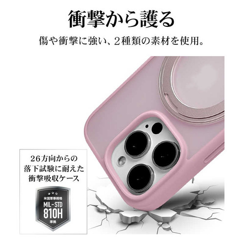 ●ボタンやカメラ周りの細部まで保護できる精密設計です。●米軍MIL規格「MIL-STD-810H」最新の衝撃基準規格に準拠。●アメリカ国防総省で定められた、米軍調達品基準に準拠した規格で、26方向からの落下試験に耐えた衝撃吸収ケースです。●指が通せて操作安心、120度開閉&360度回転でお好みの角度に調整可能な、MagSafe対応リング付き。使用しない時はスリムに収まります。※背面のリングを使用する際は必ず端末とケースを一緒に手に持ってください。リングのみを持って宙づりにしたり、振り回す等の行為はしないでください。端末の落下や本製品の破損の原因となります。●リングを開いて縦置き・横置きの視聴スタンドとしても使用できます。●柔軟性のあるTPU素材と傷に強いポリカーボネートのハイブリッドケースです。