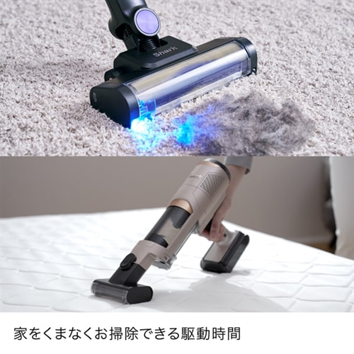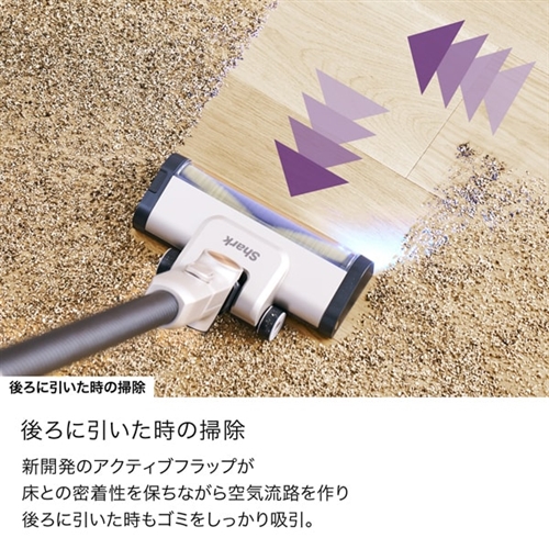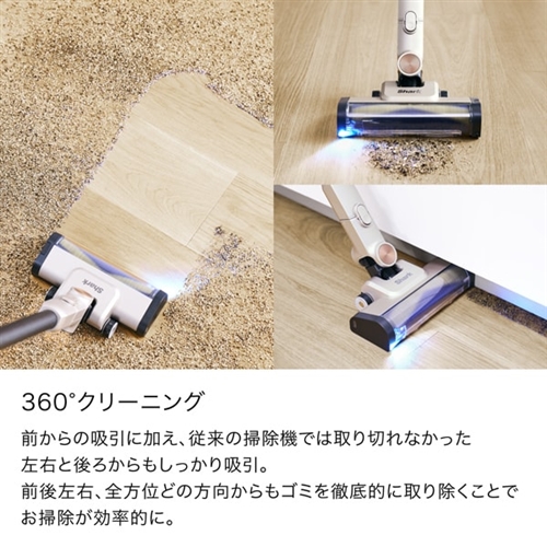 シャーク独自の先進テクノロジーの3つのセンサーが賢くお掃除をサポートして、前後左右からゴミを吸い取るシャークの360°クリーニングで取り残しを徹底的になくすことにより、2.2kg以下のコードレススティック掃除機の中で最も優れた掃除性能を実現。