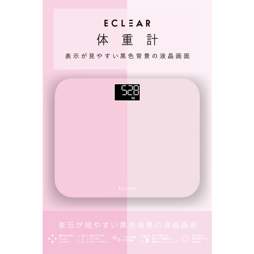 エレコム HCS-S03PN 体重計 コンパクト 乗るだけ自動電源ON LED表示 電池付属 エクリア ピンク