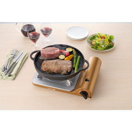カセットフーシリーズの中でも、薄さにこだわ ったカセットこんろです。テーブル着席時でも お鍋の中が見やすく、具材が取り出しやす い形状です。