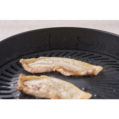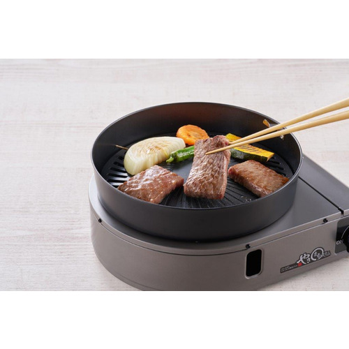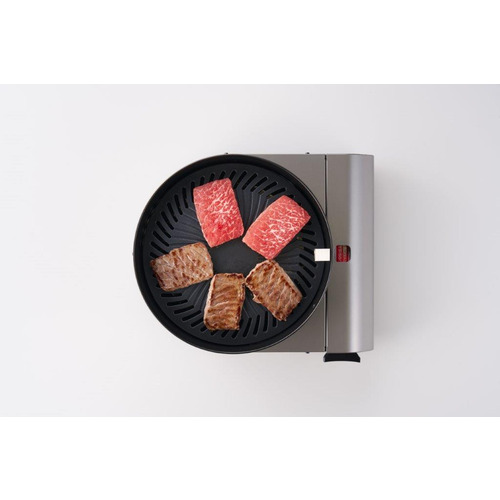 プレートの焼面温度を210〜250度に保 つことで、肉の脂が煙化することを抑制し ます。さらに炎に脂が当たらない構造なの で、焼肉中の煙の発生を抑制することが できる焼肉専用器です。