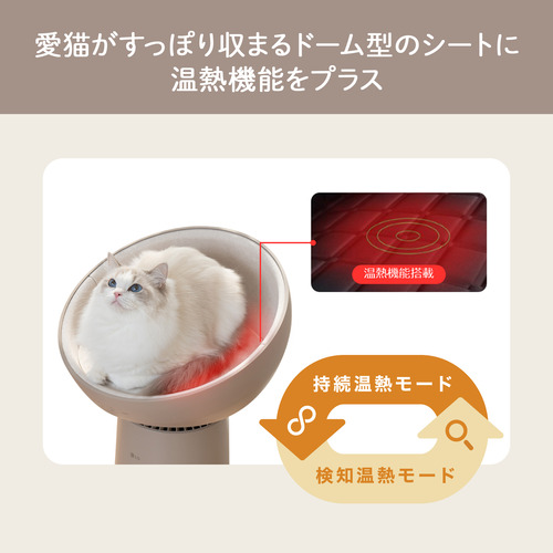 ●愛猫が安らげるよう温熱シート搭載で、さらに体重測定もできるキャットドームつき
