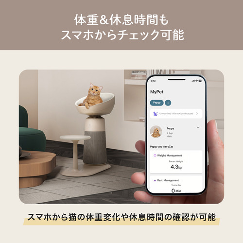 ●キャットドームで休んだ時間や体重の変化をスマホアプリでモニタリング