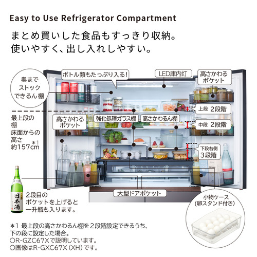 ※1 出荷時は「まるごとチルド」設定。設定時は消費電力量が増加。ドアポケットは「まるごとチルド」には含まれません。