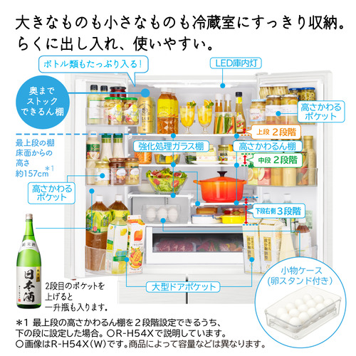 日立 R-H54X 6ドア 冷蔵庫 540L フレンチドア ピュアホワイト