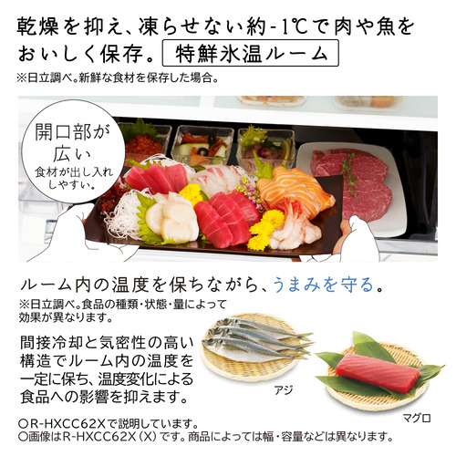 ※2 日立調べ。冷蔵庫の使用状況や、食品の種類・鮮度・保存場所などによって効果が異なります。