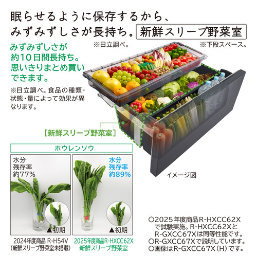 ※2 日立調べ。冷蔵庫の使用状況や、食品の種類・鮮度・保存場所などによって効果が異なります。