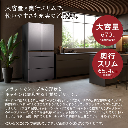 日立 冷蔵庫 670L 観音開き 6ドア 幅88cm 大容量×奥行スリム 冷蔵庫カメラ らくうま!ひろin冷凍 R-GXCC67X H グレー系 2025年