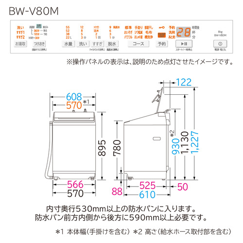 設置可能な防水パンサイズ(内寸奥行):530mm以上
