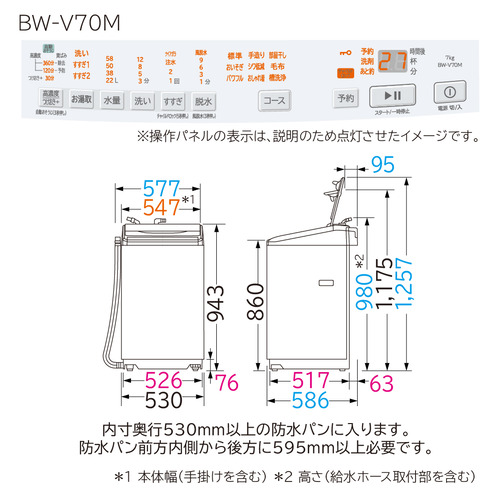 設置可能な防水パンサイズ(内寸奥行):530mm以上