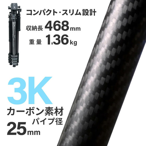 ●ボールヘッドとビデオ雲台搭載のカーボン三脚